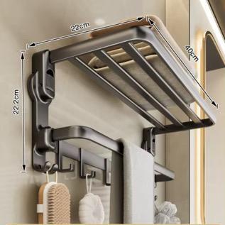 Suport Prosoape Baie Rabatabil din Inox Antirugină – Cu Ventuze Puternice, Culoare Gri, Design Modern