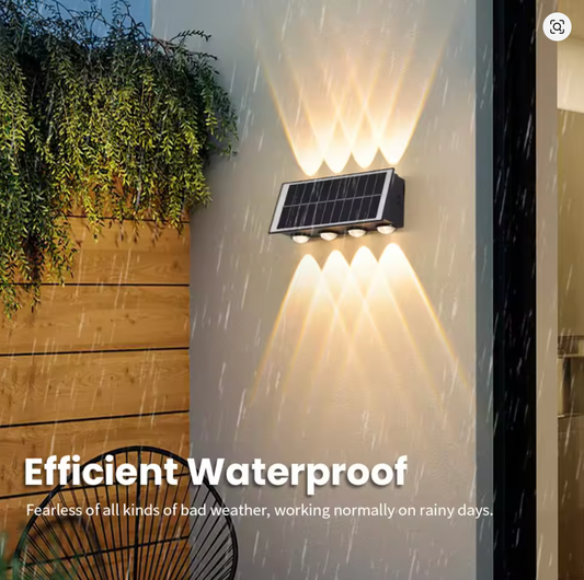 Lampă Solară de Perete Exterior LED 8W – Iluminare Dublă Sus-Jos, 8 LED-uri Puternice, 12.000mAh, Lumină Caldă – Economie de Energie și Design Modern