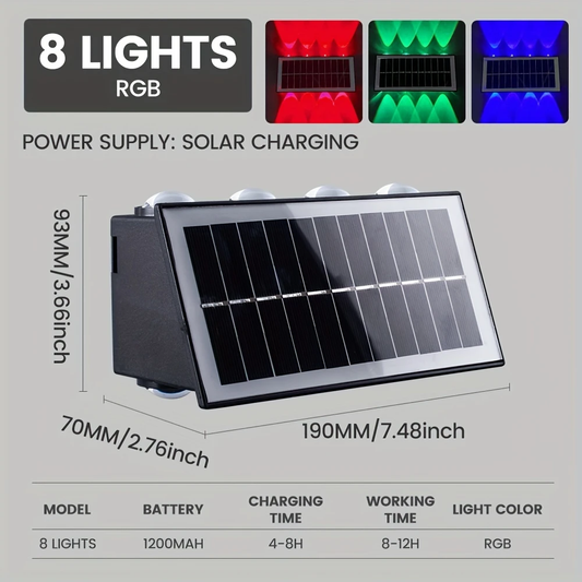 Lampă Solară RGB LED Exterior 8W – Iluminare Sus-Jos, 7 Culori, 8 Moduri, 12.000mAh – Design Modern și Eficiență Energetică