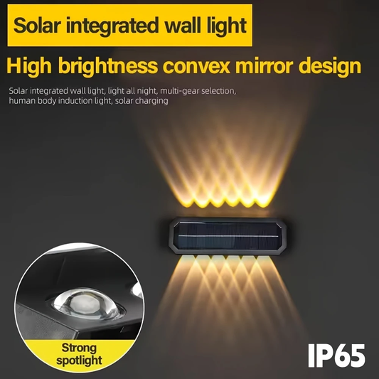 Lampi Solare de Perete cu LED Bidirecțional - 6 LED-uri Puternice, Iluminare Sus și Jos, Design Modern IP44 pentru Grădină, Curte, Alei și Terasă - Montaj Ușor, Rezistență Ridicată