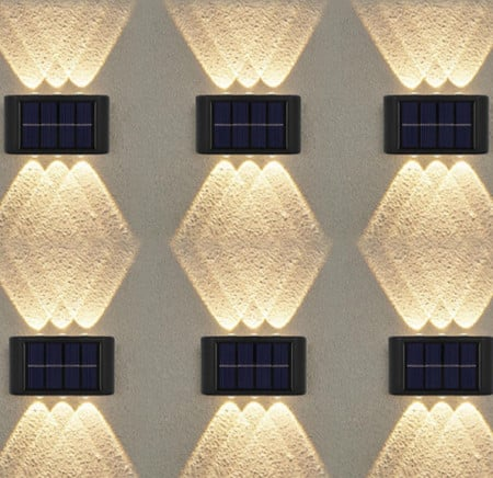 Lampa solară de perete pentru exterior, iluminare sus și jos, 6 LED-uri, 2 moduri de iluminare, eficiență energetică