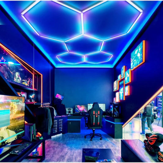 Economisești 52% BLACK FRIDAYAplica LED Hexagonală HoneyComb, 14 Hexagoane, 672W, 2435x4845 mm - Iluminat Modern și Eficient pentru Tavan sau Perete
