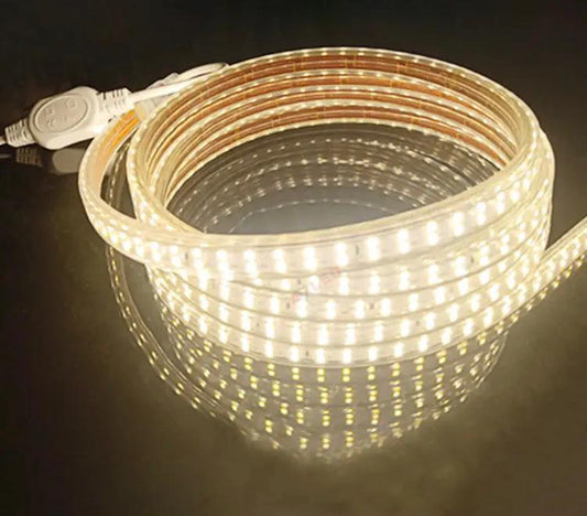 Kit Complet Bandă LED 2 Randuri 2835 220V - 120 LED-uri/M, IP68 - 10W/M - Lumină Reglabilă Alb Cald (3000K) sau Alb Rece (6000K)