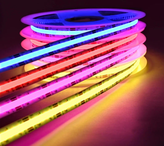 Bandă LED RGB COB Digitală/Normală 24V - 576 LED-uri/m, 5M - Cu Adeziv pe Spate pentru Instalare Ușoară