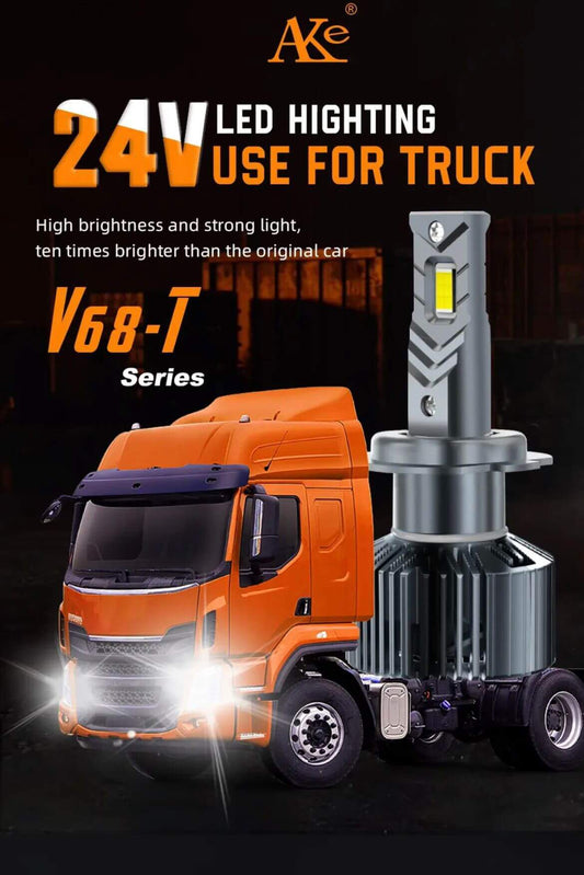 Set 2 Becuri LED H7 și H4 24V pentru Camioane AKE V68, Canbus, 120W/Bec, Alb-Rece, 12.000 Lumeni - Fără Eroare