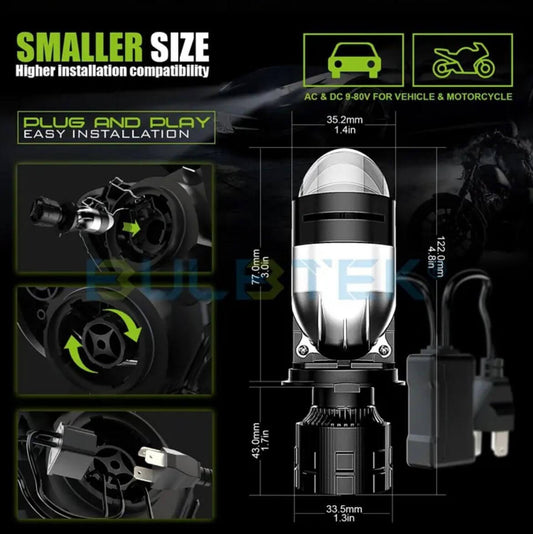 Set 2x Becuri LED H4 A7 Canbus - 150W, 6.000K, 30.000LM/set cu Mini Lupă - Două Faze