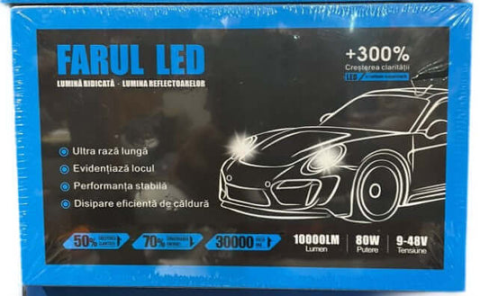 Set 2 Becuri auto LED H7 - H11 F2 Canbus - Luminozitate 10000lm - Consum Redus 160W - Compatibile 9-48V