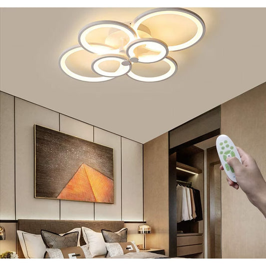 Lustra LED Plafonieră 6 Cercuri cu Telecomandă Smart WiFi 2.4G, Lumina Reglabilă Caldă, Neutră și Rece