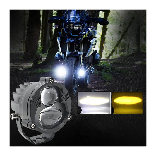 Proiector LED Bi-Color Alb-Galben Off-Road pentru Moto și ATV, Cu Lupa 50W - Xentech Light Bufniță 12-24V
