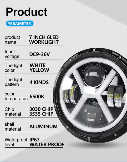Lupă LED Far Auto 95W 7 Inch 10.000LM 6500K – 4 Moduri: DRL, Semnal, Fază Scurtă și Lungă – Iluminare Intensă Off-Road și Trafic