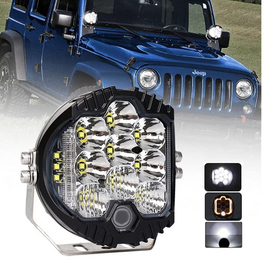 Proiector LED Pătrat 140W 4 Inch, 3 Faze DRL Alb-Rece și Galben, Cipuri 3535 – Iluminat Auto 12-24V pentru Camion, SUV, Off-Road