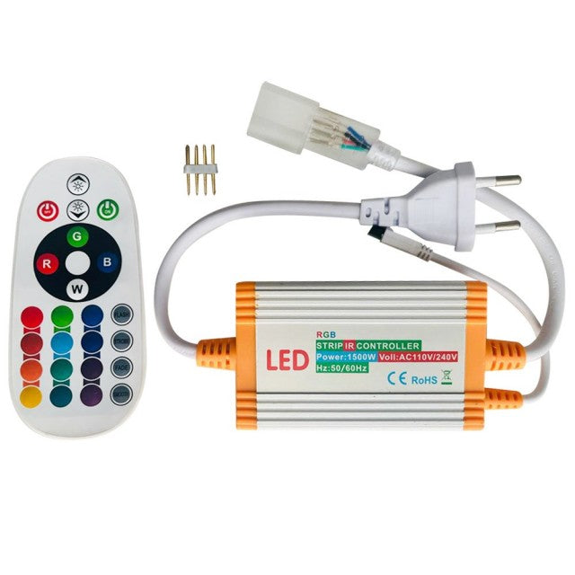 Controler Cablu Alimentare SMART WiFi cu Telecomandă pentru Furtun Neon RGB și Bandă LED RGB - Putere Maximă 50M/750W - Compatibil 110-220V